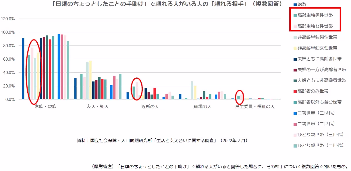 そして実際の高齢期の単身世帯でも若い世代でも、ちょっとしたささいな事を頼めるのは、実際家族以外に頼める人は本当に少ないのが現状です。